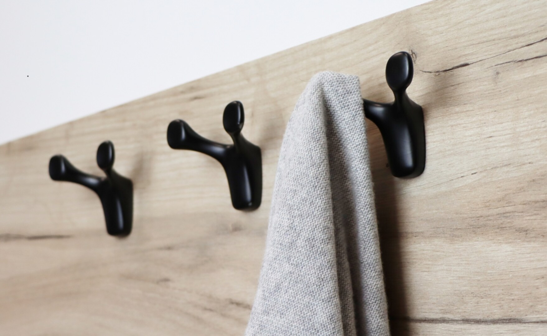 i dlouhou životnost. Díky černé matné povrchové úpravě působí věšák moderně a elegantně,