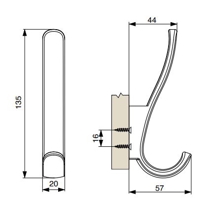k podkladu (nábytek, dřevo, stěna) pomocí šroubů. Následně věšák nasadíme na destičku a připevníme.