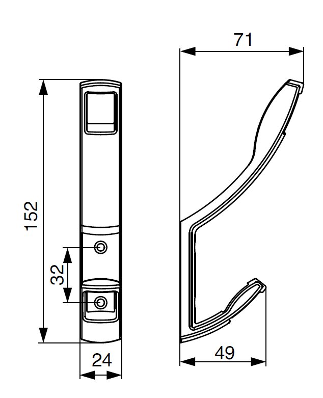 Z přední strany věšáku jsou 2 otvory, kterými přišroubujeme věšák šroubky k vhodnému podkladu (nábytek, dřevo, stěna).