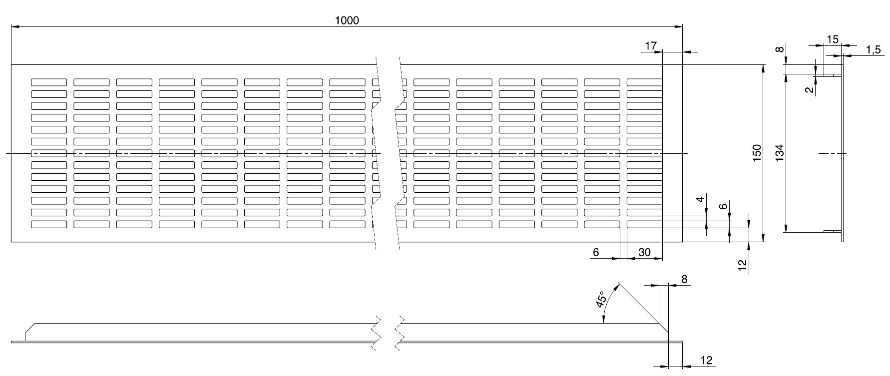 - hliníková větrací mřížka s otvory 40 x7 mm