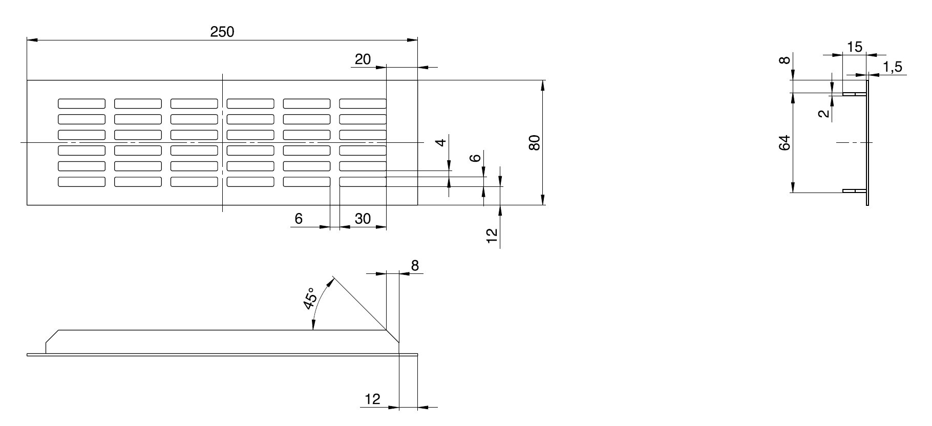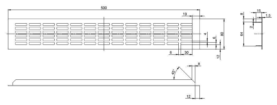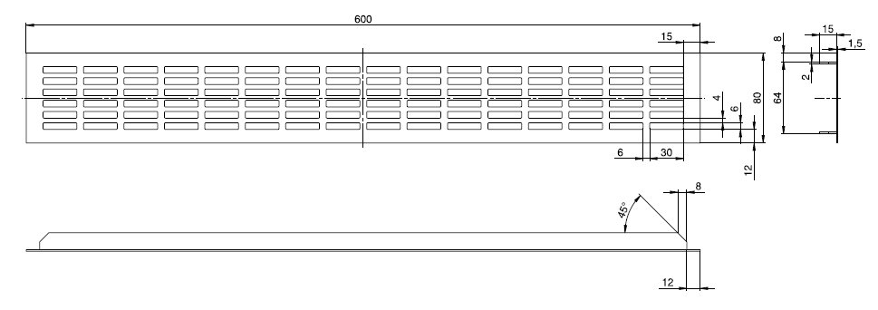 - hliníková větrací mřížka s otvory 40 x7 mm