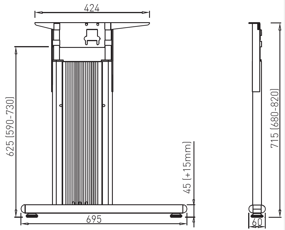 - možnost výškového nastavení pracovní desky 680- 820 mm