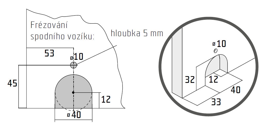 - použití pro DTD 18 mm systém, šíře kolejnice 75 mm a 56 mm