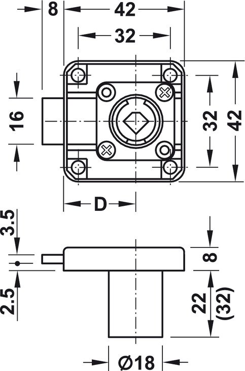 zámek Symo zásuvkový Levý 18/22 nikl - komplet