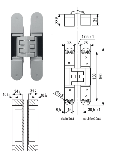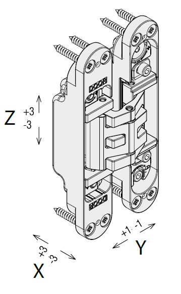 - závěs pro těžké bezfalcové dveře s 3D seřízením . výškově a předozadně +/- 3mm, stranově +/- 1mm