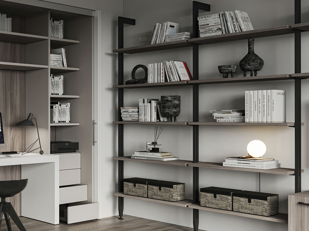 Modulární regálový policový systém ZERO je designové řešení úložných prostorů v šatně, kanceláři nebo obývacím pokoji.